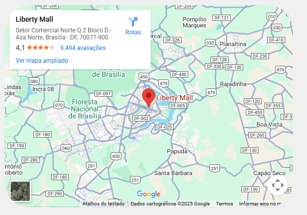 Estamos na SCN Quadra 02 – Torre A – Sala 312 no Shopping Liberty Mall